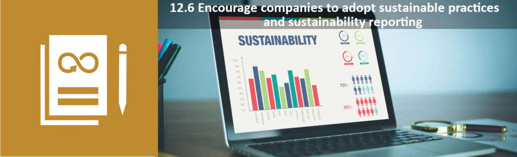 Target 12.6: Encourage companies, especially large and transnational companies, to adopt sustainable practices and to integrate sustainability information into their reporting cycle. Link to https://unstats.un.org/sdgs/metadata/files/Metadata-12-06-01.pdf