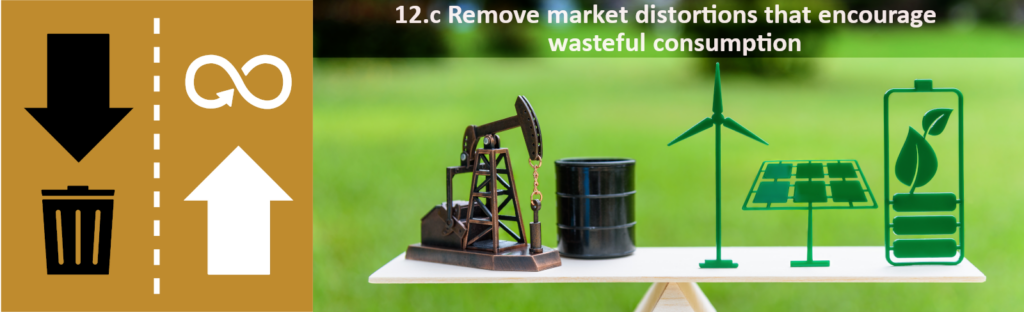 ทำให้การอุดหนุนเชื้อเพลิงฟอสซิลที่ไร้ประสิทธิภาพและนำไปสู่การบริโภคที่สิ้นเปลืองมีความสมเหตุสมผล โดยจำกัดการบิดเบือนทางการตลาดโดยให้สอดคล้องสภาวะแวดล้อมของประเทศ รวมถึงการปรับโครงสร้างภาษีและเลิกการอุดหนุนที่เป็นภัยเหล่านั้นในที่ที่ยังมีการใช้อยู่ เพื่อให้สะท้อนผลกระทบต่อสิ่งแวดล้อม โดยคำนึงอย่างเต็มที่ถึงความจำเป็นและเงื่อนไขที่เจาะจงของประเทศกำลังพัฒนาและลดผลกระทบทางลบที่อาจเกิดขึ้นที่จะมีต่อการพัฒนาของประเทศเหล่านั้นในลักษณะที่เป็นการคุ้มครองคนจนและชุมชนที่ได้รับผลกระทบ